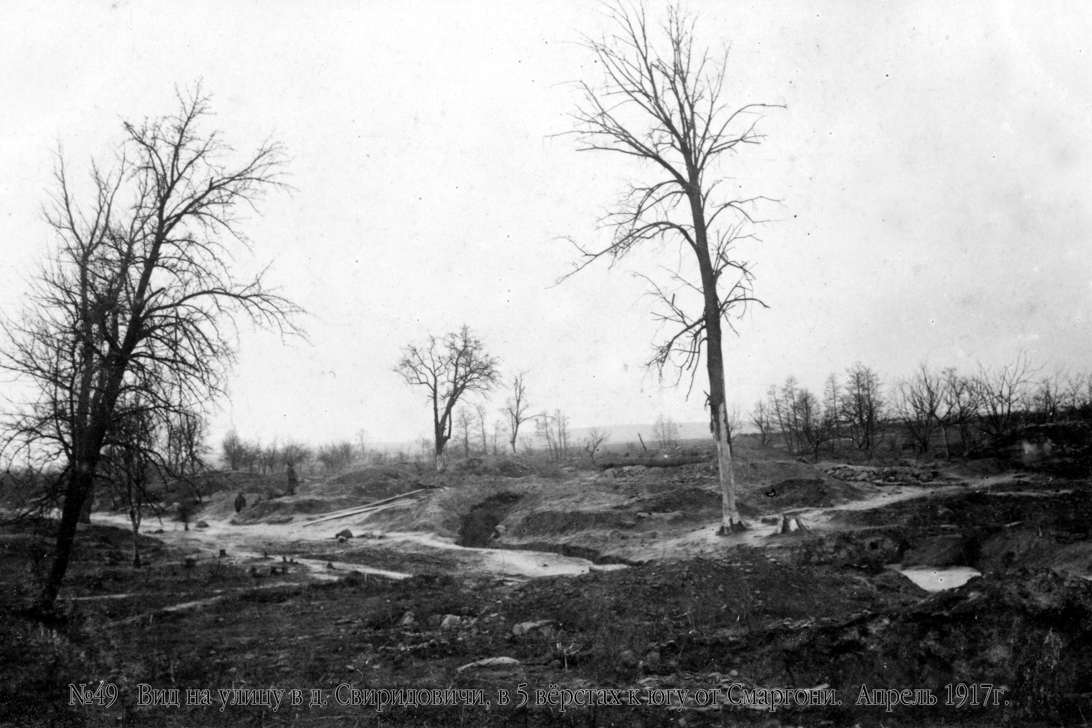 Вид на улицу в д.Свиридовичи в 5 верстах к югу от Сморгони, апрель 1917 г.