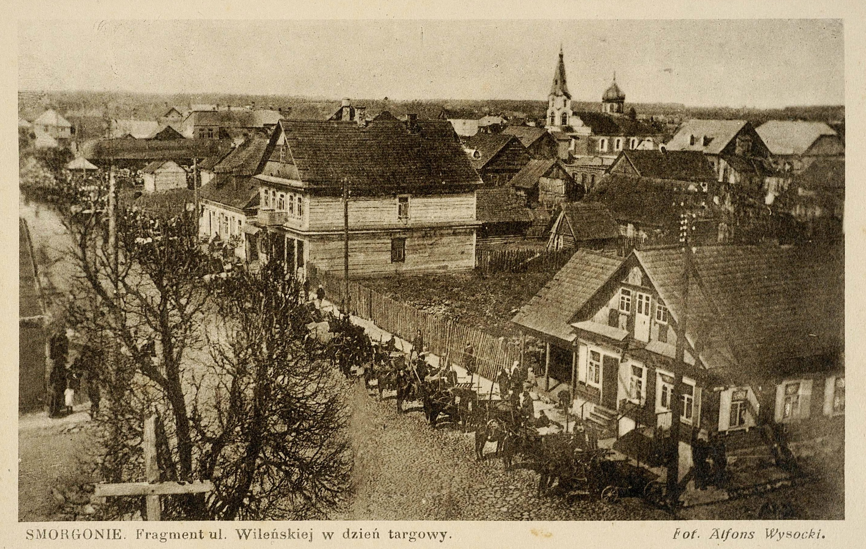 Фрагмент ул.Виленской в рыночный день. Вид с башни костёла св.Михаила Архангела в северно-западном направлении, 1905-1915 гг.
