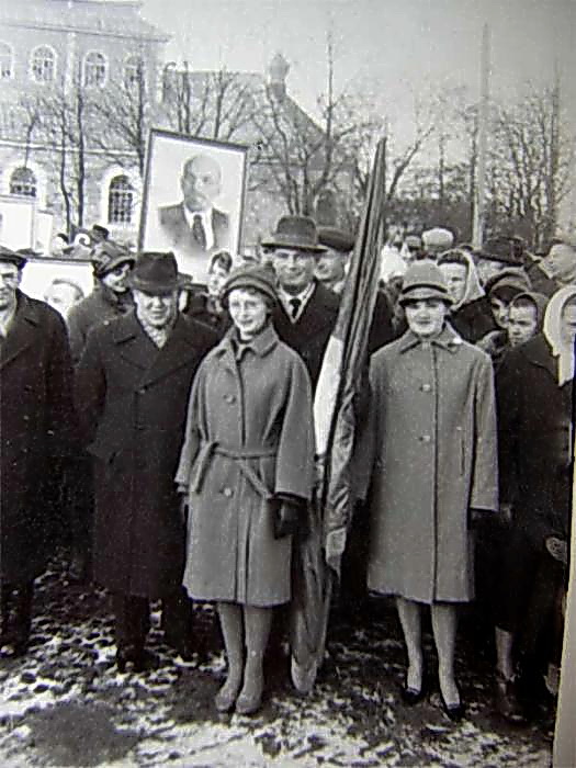 Первомайская демонстрация, на заднем плане - Спасо-Преображенская церковь