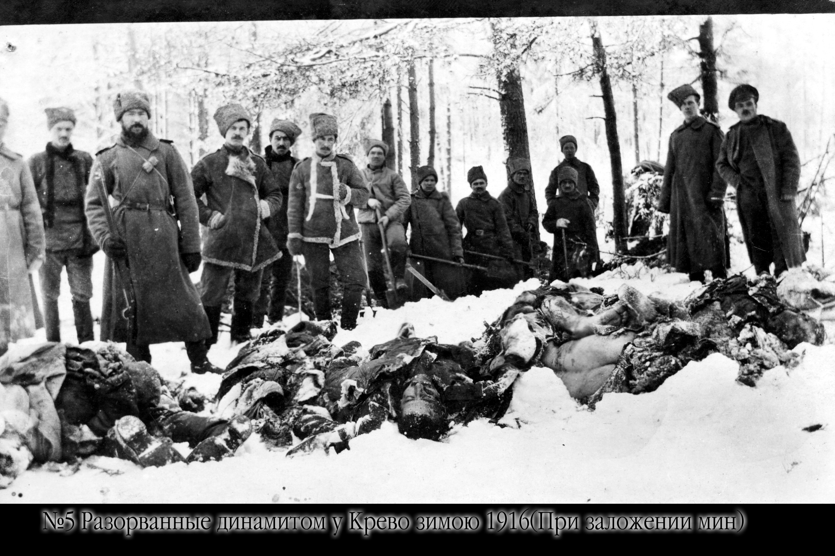 Разорванные динамитом у Крево зимою 1916 г. (при заложении мин)